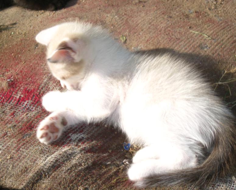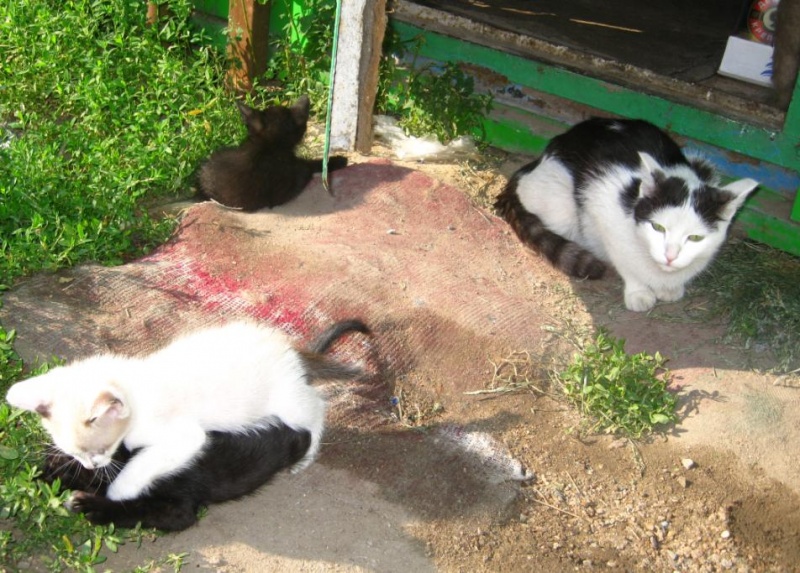 Сотрудницы киоска неплохо к ним относятся, говорят, что кормят. Но на вид все мелко-тощенькие. А, может быть, я просто от котят отвыкла, с щенятами больше, потому и кажутся ну уж совсем невесомыми когда на руки берешь.