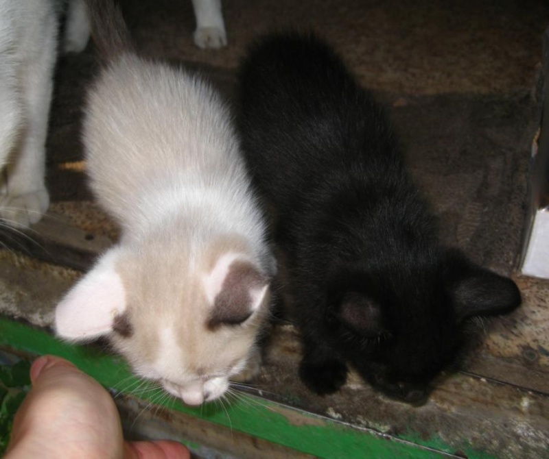 Котята, предположительно, 2 мальчика (черный и дымчатый с голубыми глазами) и черная девочка.