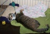 Сейчас котенка сладко уснула в домике из коробки, конечно после долгого издевательства над ее лапкой.
