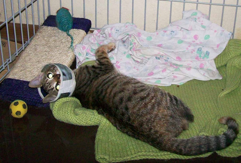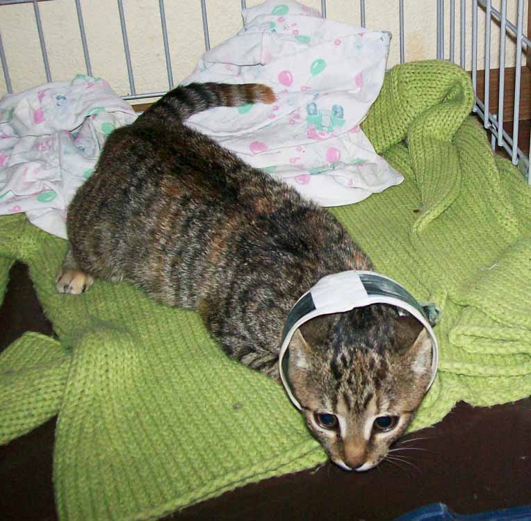 Буду обрабатывать рану. Еще у нее сильно разбита нижняя губа, но сказали, что зашивать необязательно, может вроде и сама зарости. Возраст примерно 3,5 мес. Лишая нет, лампой Вуда светили.