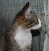 Она абсолютно несоциализированная (пока), поэтому до выяснения обстоятельств пристроя будет в клетке.