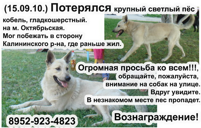 Женя хочет завтра щенка на передержку к Александру отправить и для этого очень нужна фин. помощь, потому что уже заплатить нечем, Женя еще должна Александру за корм Дины заплатить, тот ее сейчас за свой счет кормит. Щенок оказался мальчиком, месяца ему 2,5 - 3. Поэтому на завтра очень актуальна фин. помощь и кто сможет днем его забрать с Восхода от Жени и доставить Александру (если денежка соберется), откликнетесь, пожалуйста, очень нужна машина. Телефон Жени для связи 89607946111 Шарика будем продолжать искать и подавать объявления куда только можно. Расклеивать макеты, когда они будут готовы. И большое всем спасибо за отклики, потому что ситуацию по Шарику нам уже кажется безнадежной. За последнее время удалось только пристроить щенка от Марины Татунхамон, которого через день вернули назад и Шарика, который сбежал. Уже руки опускаются, щенки сидят по передержкам, их никто не берет, хотя я объявления подаю везде и постоянно обновляю, Шарик сбежал, щенки постоянно находятся, уже пытаешься закрывать глаза и проходить мимо, как я сегодня днем, когда Шарика искала, двух увидела и еще мне сказали, что несколько месячных щенков есть, которые на дорогу выбегают, но когда щенок буквально бежит за тобой и просит о помощи, не получается просто сесть в машину и уехать, не получается...Ответ на сообщение Re: Срочно! ЧП! Сбежал Шарик! пользователя Ohota