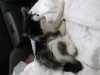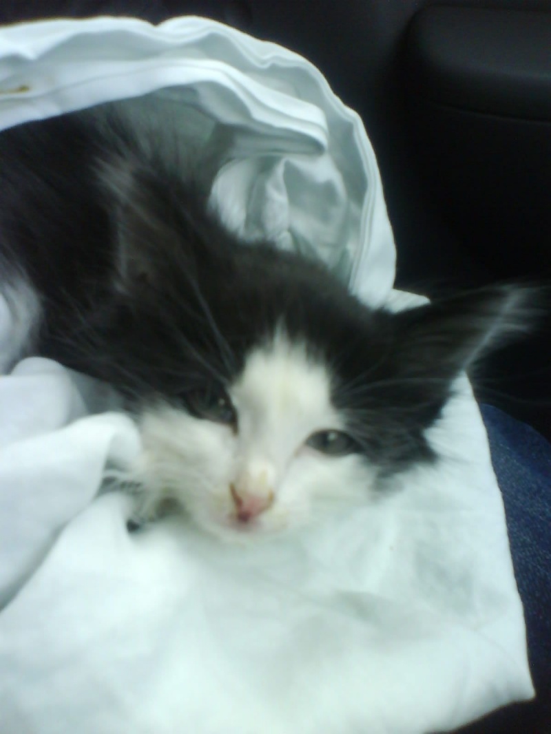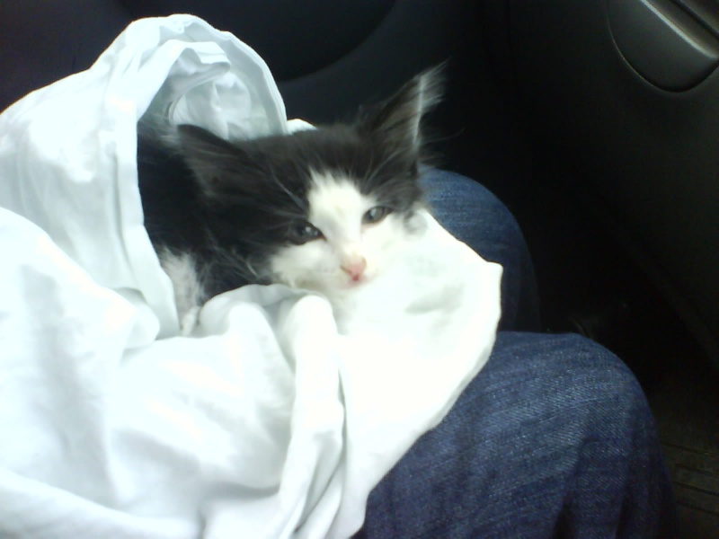 Помогите, пожалуйста! Вот и настал мой час боевого крещения. Я сегодня пошла по делам, по работе. И вдруг вижу, сидит маленький пушистый комочек и громко плачет. Люди идут мимо. Я не думая, его хватаю, на улице ветер, моросит дождик, рядом дорога, гоняют машины. Съездила с ним в ветеренарку «Евровет», на Станиславском. Поставили диагноз калицивироз, могу ошибаться, может неправильно прочитала, написано не очень разборчиво. Вообщем что-то инфекционное, а именно каросточка на носике и на язычке маленькая. Котенок оказалась девочка, крикунья и непоседа. Она познает мир, ей все интересно, потому что ей всего два месяца. Купили почти все лекарства, корм. Но проблема в том, что ее надо лечить изолированно. А у нас однешка, девать ее совершенно некуда, дома своё чудо сидит. Счас сидит на лоджии в коробке, поела, попила. Да, еще у нее, как у всех котят - подобрашек, проблема с кишечником. Ветеренар сказала, что она болеет уже дней пять. Нам срочно нужна передержка с лечением (надо будет делать уколы в мышцу и подкожно), желательно без других животных, или полная изоляция в переноску, в клетку. Я в панике, куда звонить, помогите! В итоге работа не сделана. Я буду куратором, хотя не знаю, что делать