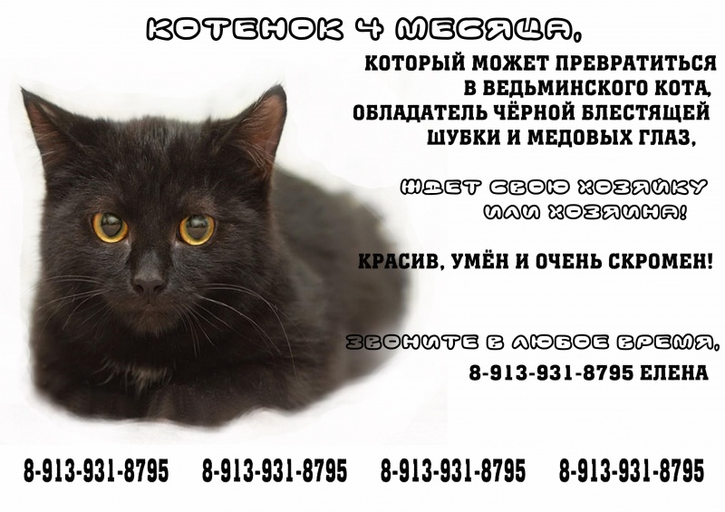 .В общем,завтра вечером кошь переезжает ко мне(к моим 4 кошачим хвостам и 1 собачьему).Кошка-чудная черепашка возрастом около 3 лет.Котёнок чёрненький и маленькое белое пятно на груди,около 3 месяцев.Спасибо Юлии tipulii за корм для котёнка.Не буду рассказывать сколько усилий пришлось приложить мне и моей доче,чтобы уговорить бабушку привезти кошку,но мы сделали это!Сильный не тот, кто одержал верх над слабым, а тот, кто придёт слабому на помощь.