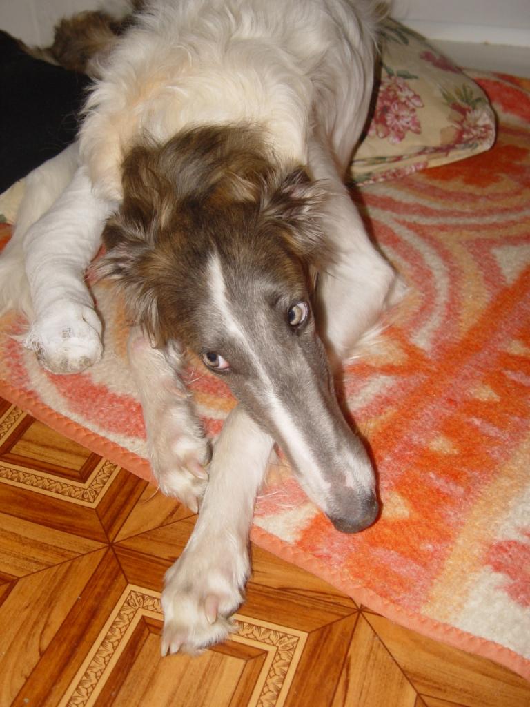 могу добавить что даже для борзой она оооочень худая, с задними ногами есть проблемы из-за неподвижного образа жизни и неправильного выращивания - в темноте сегодня не получилось сфотать движения. Но про ноги пока рано думать. Подкормка ей нужнее минеральная, она жрёт цемент.Исправлено пользователем kitsune-ars (28.11.10 21:49)