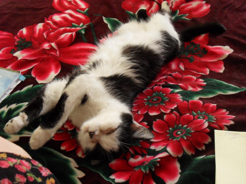 Панда распласталась на столе как лягушка, уткнулась Марине в руки и начала очень громко урчать В общем, пока кроме блох и глистов ничего, ттт.