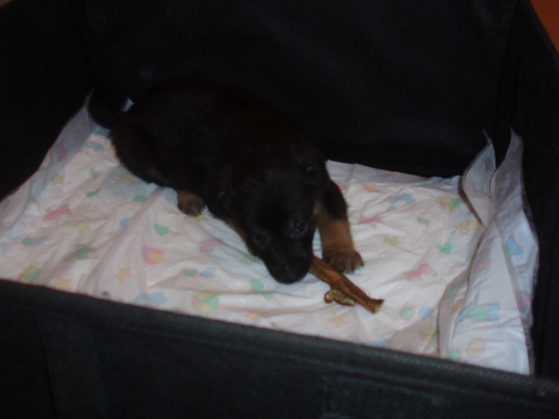 Кратенько предистория: У мусорного бака найден малюсенький щеночек. Девочка. месяц есть, нет не знаю. Сегодня ее куда то наша местная дворник утащила, завтра вроде принесет. Т.к. я как увидела, сразу сказала, что заберу.