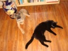 Одна кошка спит как ни в чем не бывало, так как глухая она.Ответ на сообщение Щенок Бим с энтеритом.Нужна передержка. пользователя UGene