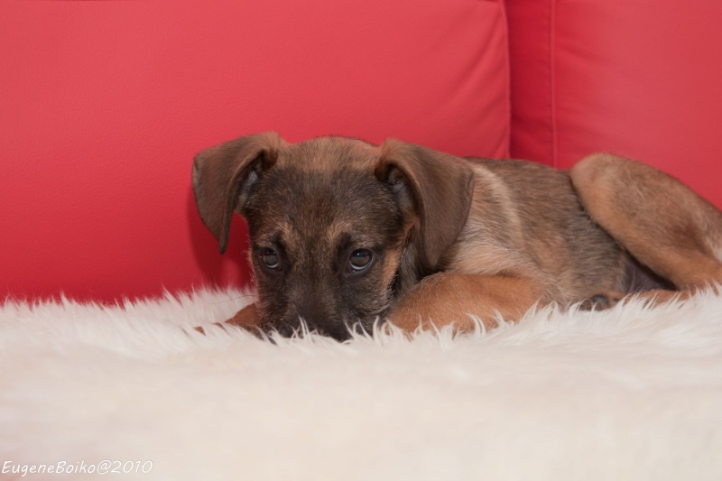 . Я Биму объяснила, что этот человек его от смерти спас, лечит, кормит-поит, не знаю, понял ли он... Затем некоторое время Бим вел себя довольно прилично, играл, не грыз косяки и плинтуса, только один раз погонял кота, за что был бит газеткой по мордасам. Вырос Бим за это время (а у меня он с 02.11.10) в два раза, весит сейчас 9,5 кг