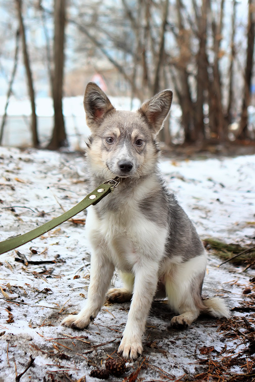Может это от того, что её вывели незнакомые люди, но такое ощущение, что она вообще поводок не знает. Трусовата, но не патологически - в помещении Катерине её даже потрогать (но не погладить) получилось. ОЧЕНЬ осторожная собака