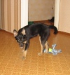 . Ну то бишь оглаживала и что-то размеренным ласковым голосом приговаривала. Так минут 5. Потом отпустила. И началось: играет от с собаками, я сижу рядом - незаметно поглажу. Когда до него доходило, что я к нему прикоснулась, начинал шкериться, но собаки снова затягивали в игру-борьбу. Через дня 4 он уже не обращал внимания, когда кто-то из людей подходил, если не подходят ближе метра - уже прогресс. На мелкие прикосновения (вот такое быстрое поглаживание, например, по боку, мимоходом) отшатывался. сжимался в комок и давал себя гладить (хвост поджимал и с перепугу вздрагивал, но уже не ссался и не кусался). Еще недельки через две начал вилять при виде меня хвостом и охранять свой угол от собак и незнакомых людей. Повезло очень, что в приятели он выбрал более старшего щенка Умника (щен, у которого при виде меня от счастья срывало башку) и Лису, которая тоже считала меня хозяйкой - брал с них пример. Полюбил гладиться, но еще боялся, посему, видимо, нашел некий компромисс: вилял хвостом и припадал к земле, весь зажимался и ждал, когда поглажу. Потом потихоньку стали с ним приучаться к другим людям: я его держу, оглаживаю, прошу кого-нибудь тоже погладить. Естественно, сначала сильно боялся, потом уже просто настороженно ласку принимал. Брал с Лисы и Умника пример, научился гулять на поводке, терроризировать собак, попрошайничать))...
