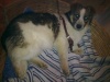 Начали с того, что подходим не передом к ней, а задом. Сели, дали себя обнюхать, поиграли с кроликом. У меня почему-то она писает-какает на пеленочку
