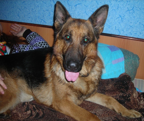 Немецкие овчарки очень умные, проверьте его на знание команд: сидеть, лежать, ко мне и т.д. Они всё быстро впитывают, и гоняйте его с кровати, не хорошо это.