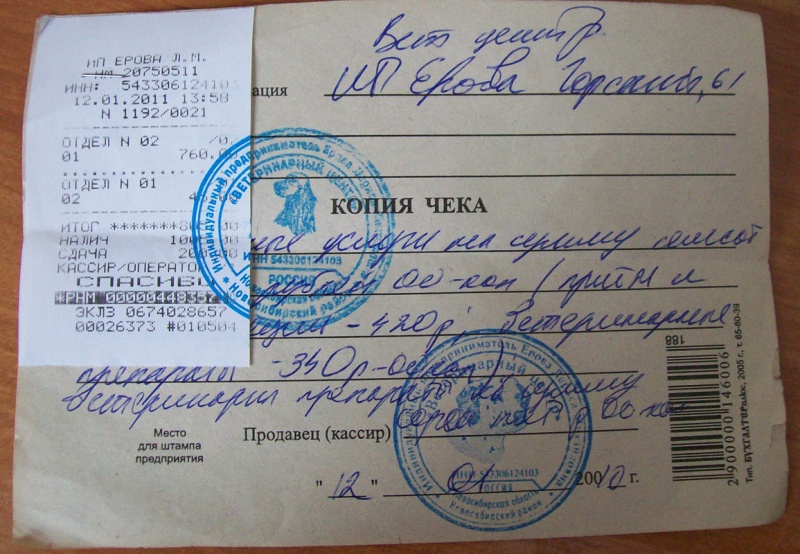 Еще чек за первичный прием и капельницы, которые ставили вечером.