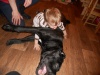 Я говорю "конечно не ваша, это наша! А ваша мадам в зале сидит!" Открыли дверь, что тут началось! Это надо было видеть! Скулеж, визги, писки, и прыгала то на одного, то на другого, и обниматься, и целоваться, и на задние лапы - чуть с ног их не уронила, хвост ни на секунду не останавливался, как-будто отдельно от собаки! Я думала у соседей внизу потолок рухнет - так Багира прыгала, что стены дрожали! Пока скакала между хозяевами задницей шибанула дверь в комнату, в которой Миша был закрыт - щеколда вылетеле вместе с шурупами как нефиг делать!