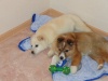Щенки очаровательные, рыженькая девочка очень умная, все понимает, легко поддается воспитанию, знает место и уже дает лапку, бежевая беззаботная, ласковая, любит в игре порычать и полаять. Аппетит отменный. Сейчас в комнате у них стоит телевизор, чтобы не так скучно было.