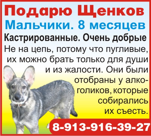 Звонила Наилю. Рыжий переночевал благополучно, поел, теперь спит после обеда. Бегать-играть его пока не тянет, Наиль считает, что по причинам физической ослабленности, то ест ходить он ходит, обнюхивает все, интересуется, но активности пока предпочитает лежание на сене в будке и дрёму. В принципе, оно и естественно - после потери 10 кг-то... С другими собаками познакомился, но пока не играет и близко особо не подходит, очень надеюсь, что все-таки скоро вольется в их игры. Вроде Наиль не замечает в нем никакой тоски, хотя я, конечно, переживаю, что он по этим людям еще и скучать начнет... Если уж женщины есть такие, что льют слезы об истязателе...