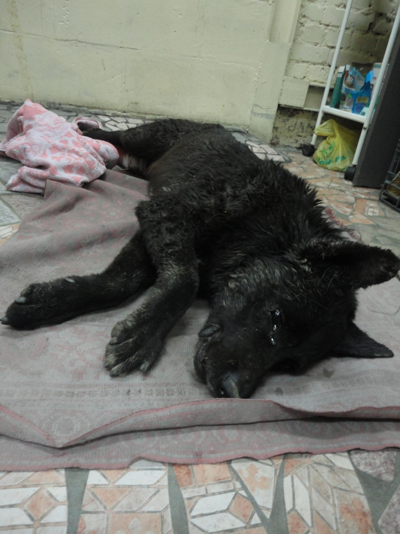 Вчера днем его нашли в районе ул. 9-ой Гвардейской дивизии. Собака лежала между гаражами и выла, даже не пытаясь подняться. И только к шести часам вечера нашелся человек, готовый не охать-ахать и возмущаться, а ПОМОЧЬ, т.е. довезти собаку до ветеренарной клиники. Врачи увидели собаку в тяжелейшем состоянии, при смерти. И при этом - никаких серьезных повреждений, способных вызвать такое состояние нет. Кроме несложного перелома задней лапы. Было принято решение везти на рентген, если переживет ночь.
