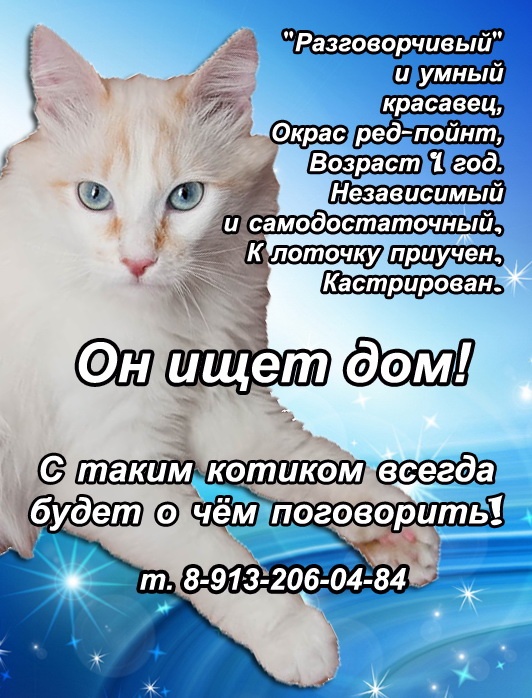 Душевный и разговорчивый товарищ.Ответ на сообщение Найден голубоглазый котик окраса ред-пойнт пользователя Svetlana64