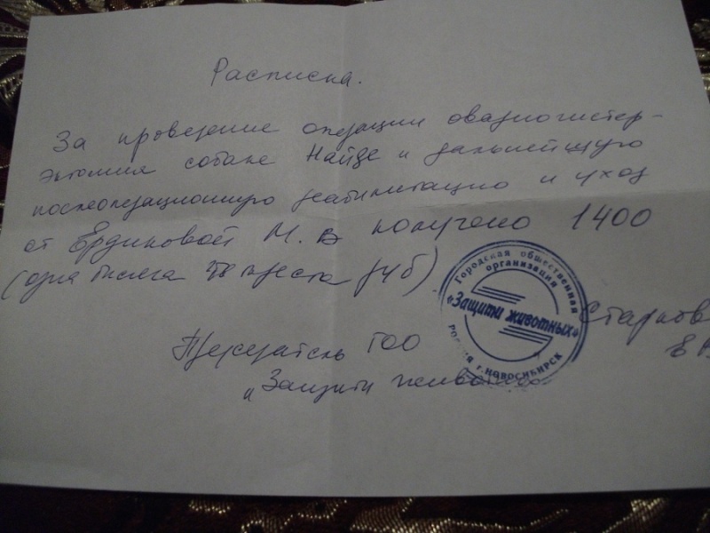 Когда все соберу -отправлю кураторуОтвет на сообщение нужна помощь собаке по удалению саркомы. пользователя VALIKIRIA
