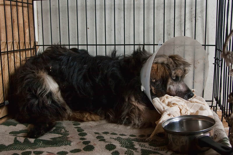 на ст. м Октябрьская несколько недель назад объявилась симпатичная собачка. небольшая, пушистая, обаятельная. но диковатая. бегал себе, как и десятки здесь. неделю назад позвонили, сказали, что у собаки как будто вывернута челюсть - не ест, почти не пьет, рот все время открыт. ловили три дня к ряду! видно, что слабый, но от страха все равно чешет, как заяц и очень верткий. через пять дней почти без еды (только молоко) ослабел, так что Санджар и ЕВ смогли его изловить.