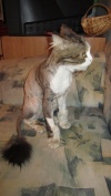 Жаль мне расставаться с ним, он очень верный друг и ласковый котяркин! Но к сожалению я не имею возможности у себя держать животных, я всё время на работе, дома он один, 1 июля я уезжаю, а Лису сейчас нужна забота, внимание и хороший уход и кормление, только тогда с ним будет всё в порядке. Нервишки у него всё равно расшатаны, он хоть и начал доверять людям, но всегда настороже, если что, готов к атаке, себя в обиду не даст, потому, что досталось ему похоже не мало, бедняге