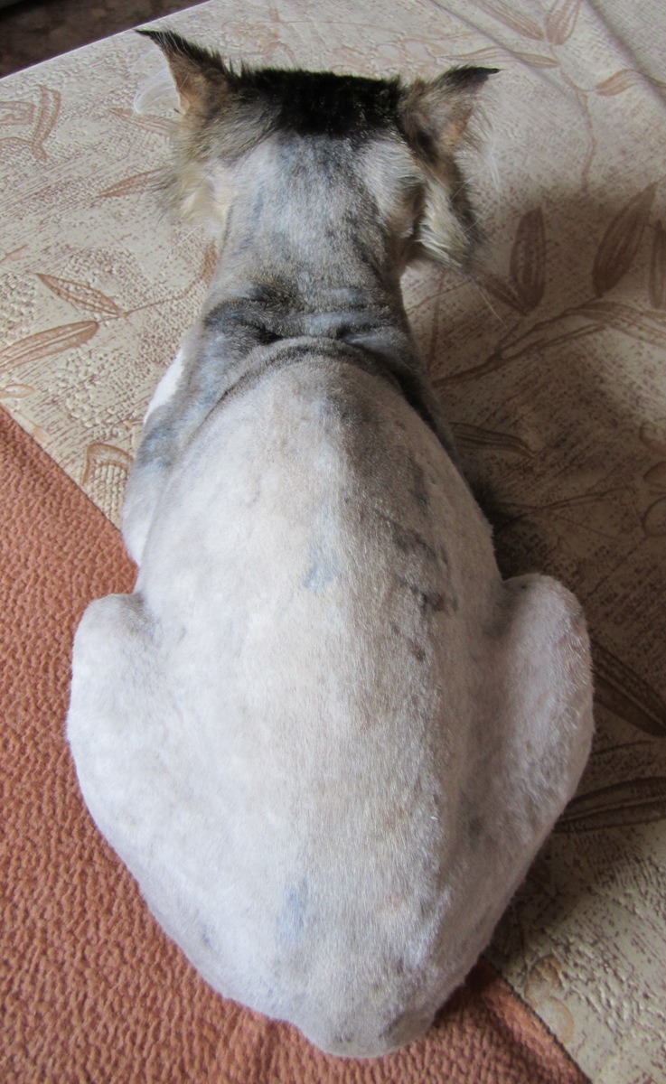 начну наряжать он опять распсихуется, после стрижки только успокоились, как тут у меня под окнами кошатинка серенады начала распевать, Лису душу всю растревожила, он пол ночи на окно молится в виде Египетской мумии