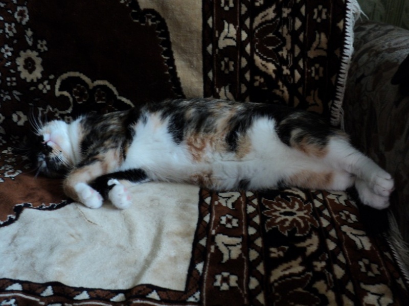 сейчас отходит от наркоза, вернее просто лежит спит. Попонку что одели в клинике пришлось снять, так как по пути кошка описилась 3 раза, вся попона насквозь мокрая. Сейчас подсохнет пузико, одену новую попонку.