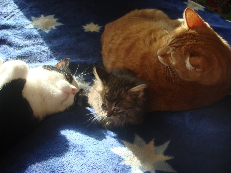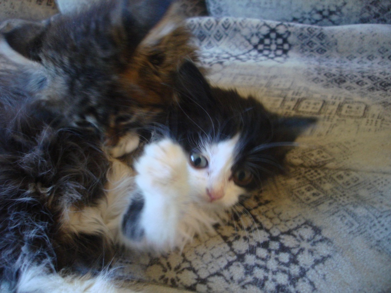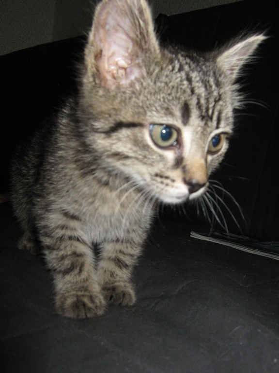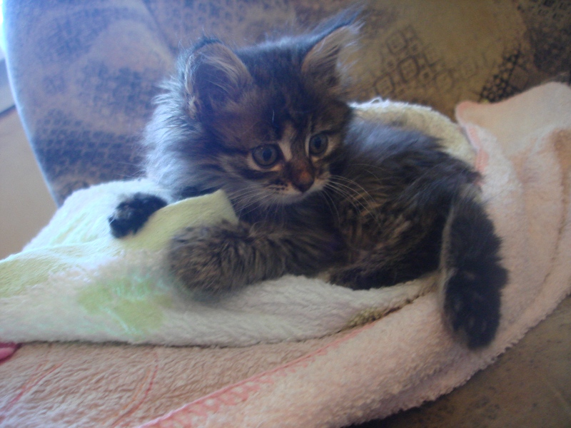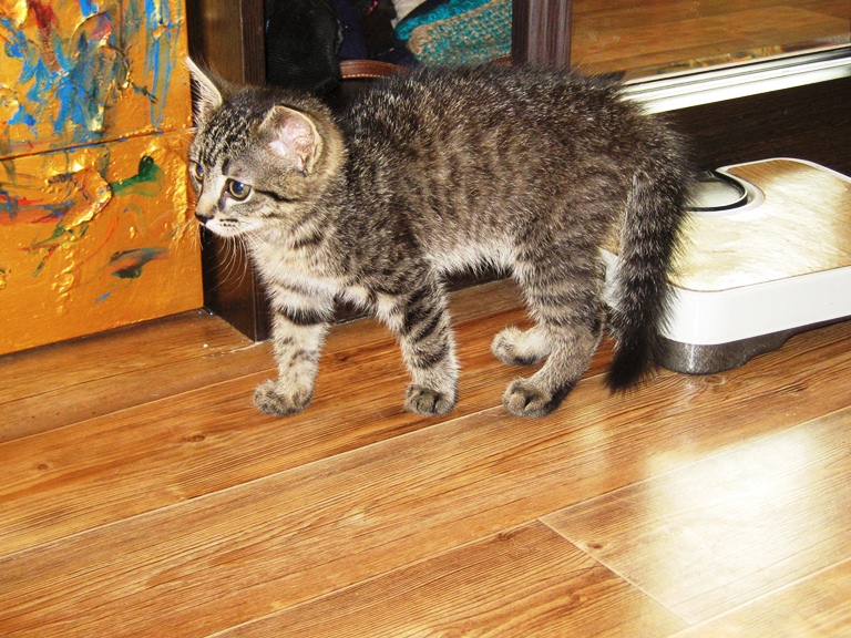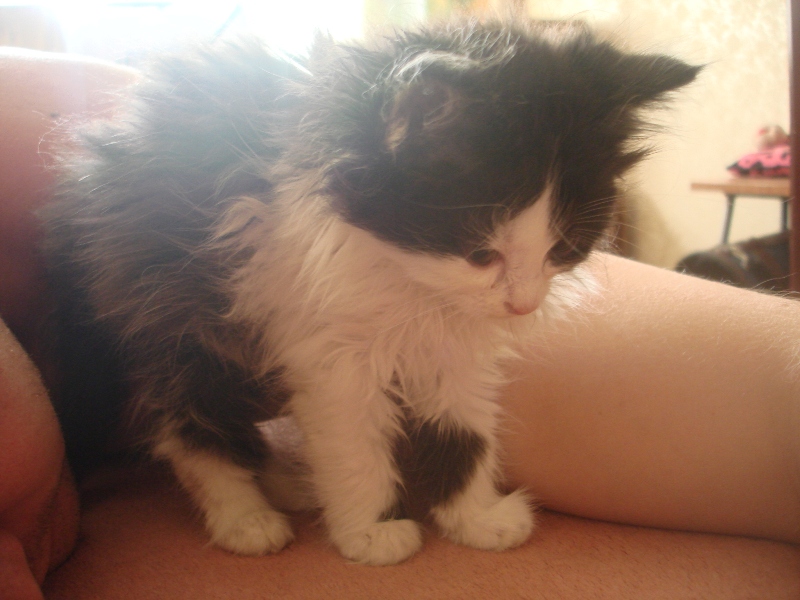 причем рассказывает мне как ни в чем не бывало, типа чтоб не размножались тут. Я видела что у кошки соски рассосаны и говорю бабули, вы котят пожалуйста не душите, вы мне позвоните, я их заберу ( ругаться смысла нет, она меня не пустит кормить кошек и котят всех передушит все равно). Ну вот она мне и звонит в воскресенье, кошка вытащила котенка и лежит с ним у подъезда, приходи забирай или я сама решу вопрос. Ну я ноги в руки и туда. В итоге: малыш, паца, месяцев 1-1,5, причем внешне похож на Миланку, а я ее не далеко от этого дома нашла, вот и думаю может оони родня, мамка вытащила, а она убежала или ребятишки утащили. Малыш жутко напуган, всего боится, спит либо в диване, либо в шкафу в калготках моих