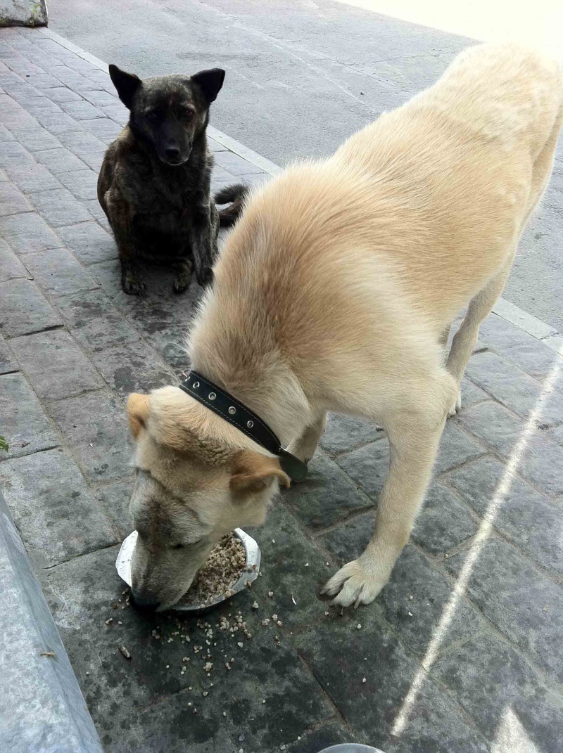 Мы каждый день по три раза на дню навещаем его на заправке, гуляем, кормим кашами и кормом(это все на свои деньги).