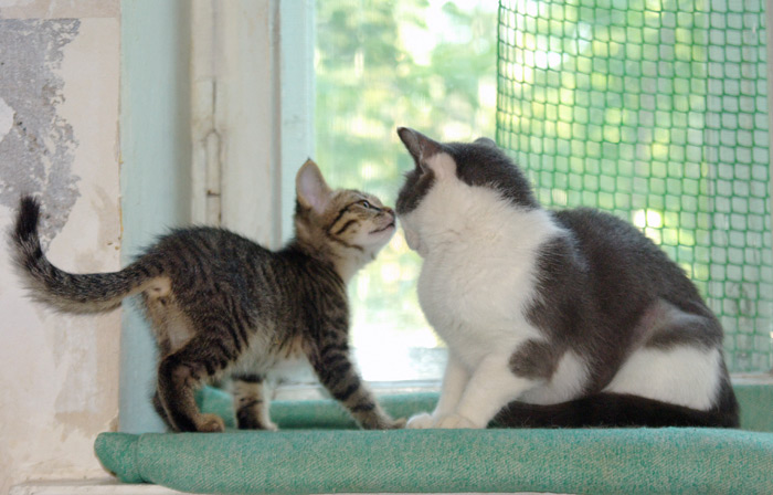 Надеемся , что кошки подуспокоятся и будут играть вместе, а не делить территорию и внимание людей.
