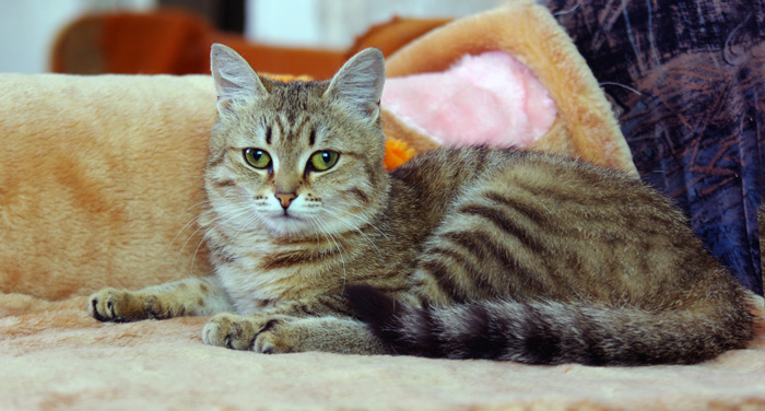 • Девочки, сравните фото Сапфирки с этой кошкой. Аж екнуло.Но наша кошечка стерилизована, серые пятна посветлее и в полосочку, хвостик тоже. Но все равно посмотрите пожалуйста: