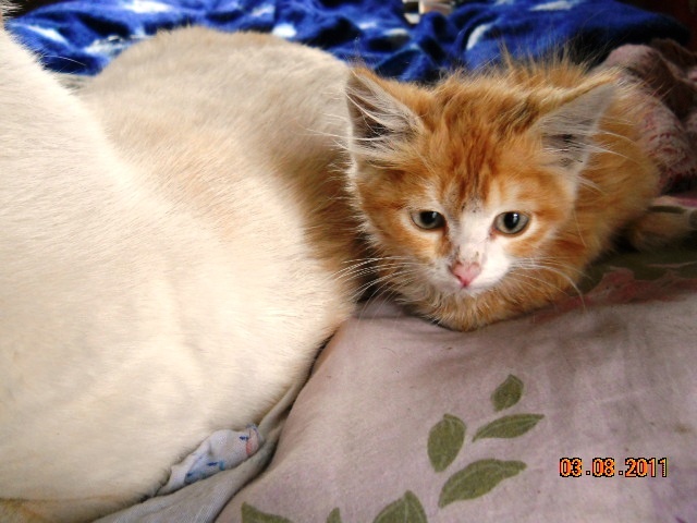 И ещё вопросец. Пока искала котенка, в "картотеке животных" нашла фото вот такого которебёнка, который живёт в гор.приюте. Кто в курсе, с малышкой что-то не так или просто фото такое?Это фото такое, подсветка снизу была, вот она такая страшненькая и вышла, просто других фотографий с ней нет. А так она здорова, ну была по крайне мере когда фотографировали, они спали когда их фотать пришли.