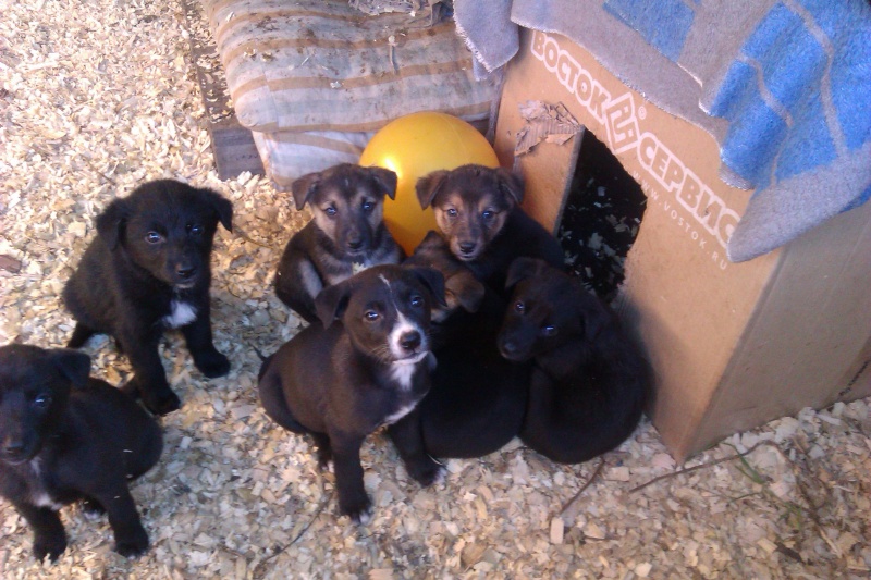 Щенки родились под школой в подвале, а т. к. скоро новый учебный год,было принято решение забрать щенков на передержку.