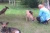 Это нас успокоило-значит могут уже есть самостоятельно. По предварительному осмотру -похоже,что 6 или 7 девок , а 4 или 3 парня. Щенкам около месяца, но так как они получали плохое кормление и молока им не хватало-они не крупные. Завтра их взвесят. Но все родственники щенков из стаи размером с довольно крупных овчарок. Окрас разный-от белого до чисто черного и много овчароидного окраса. Сейчас им необходимо усиленное питание. И я думаю, что через две недели все будет хорошо и мы начнем их пристраивать