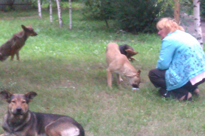 Мамочка-Зайка уже бросила щенков и почти не приходила к ним. Женщины , живущие рядом подкармливали их.