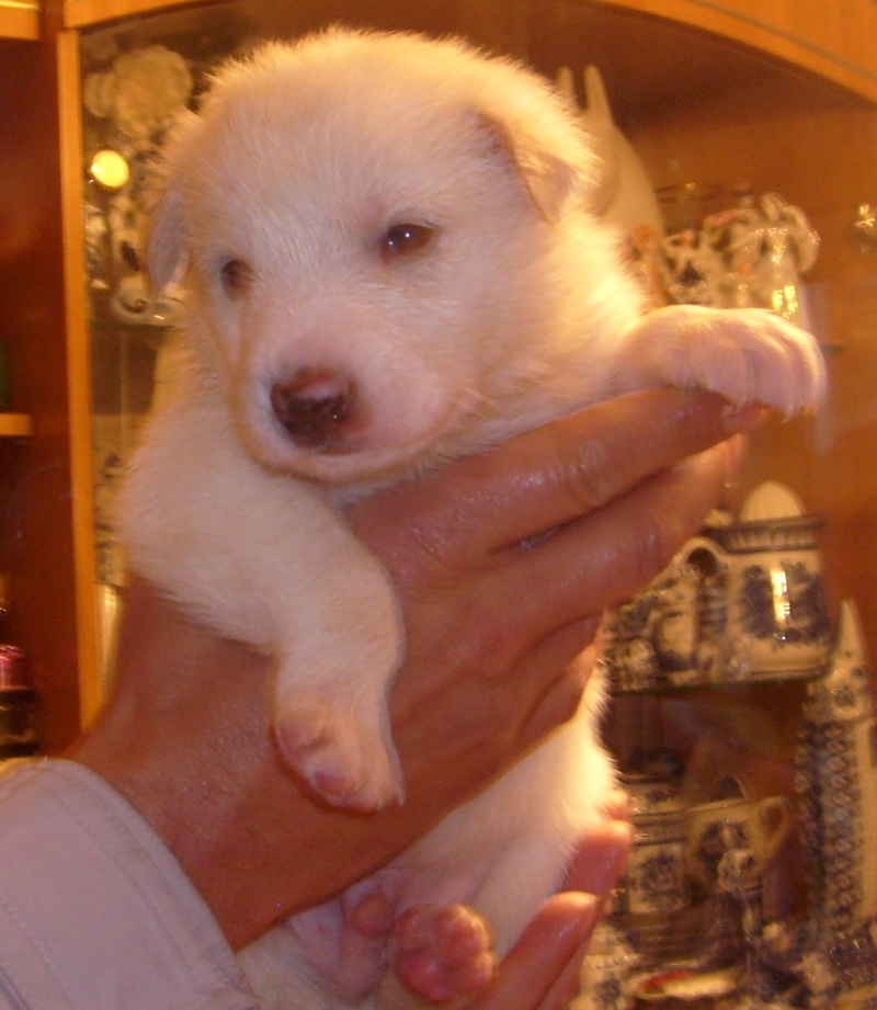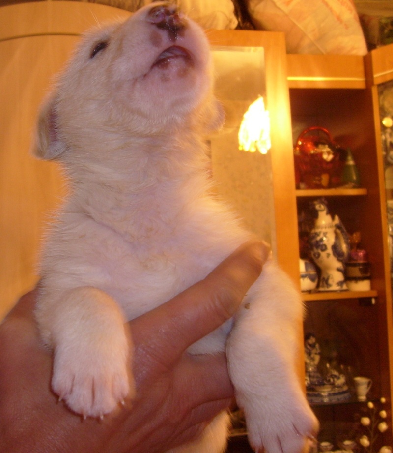 Щенки очень красивые и очень крупные(около 3 кг.). Белые похожи на лабрадоров,а остальные на овчарок.Мы уже два раза пристраивали ее щенков- вырастают крупные и очень умные собаки.