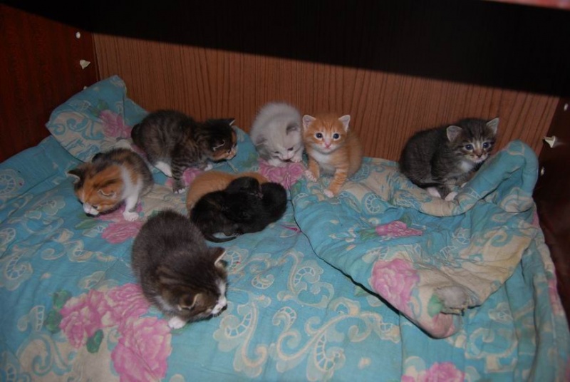 Как только котята подрастут, заберем, будем искать передержку и пристраивать.