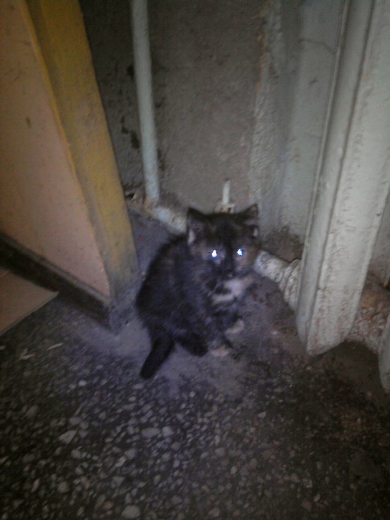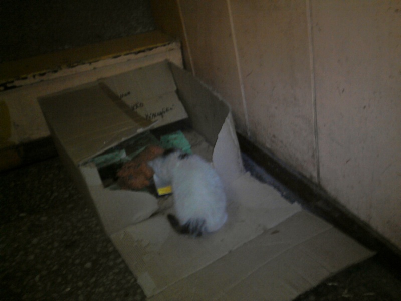 Живу в общежитии, комната 12 кв.м., помимо нас с дочкой с нами кот и щенок на передержке. Просто реально взять не куда! Кот живет по верху по шкафам, внизу щенок, скажем так не мелкий - затопчет малыша, клетки нет, да и ставить ее не куда. Спустилась вниз покормить - смотрю ребятишки тусуются, ну тихо ретировалась, думаю может кто из них родителей уболтает, возьмут малыша. Сегодня утром спускаюсь с собакой нет сидит малютка, думаю ладно один попробую пристроить, в семь спустилась, а их уже двое, видно решили весь выводок перетаскать