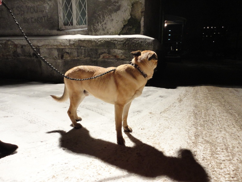 Мы гуляли не спеша, сделали все нужные дела, и немного пофотались (но много фотографиий получилось смазанных). В какой-то момент на улице стали слышны взрывы от салюта и Джою это не понравилось, переждали пока прекратятся, ему стало спокойней и мы пошли дальше. На пути обратно мы даже немного пробежались.