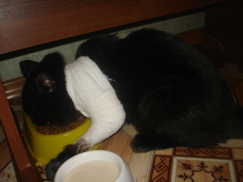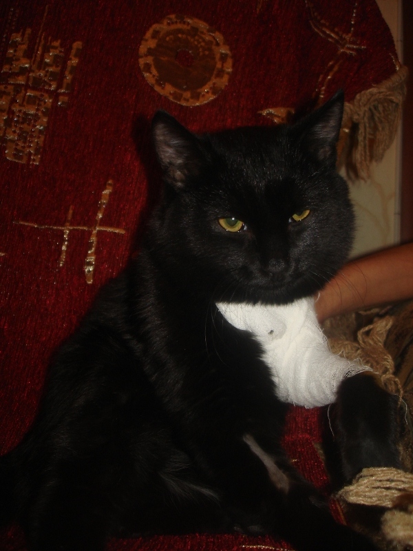 Дела у нас отлично, как только я занесла Симафора в до, там где он жил, он так обрадовался, начал бегать по комнатам за мамой подруги, побежал бегом на кухню и начал жадно трескать корм, прям глотать. Много давать не стали, пусть отойдет полностью, хотя выглядел он живчиком. на лапке у нас пока повязка, пару дней походит с ней, потом придется одеть ошейник. Дали нам с собой укольчики, будем колоться дома, на прием нам 22 декабря, вторая операция через 45 дней.