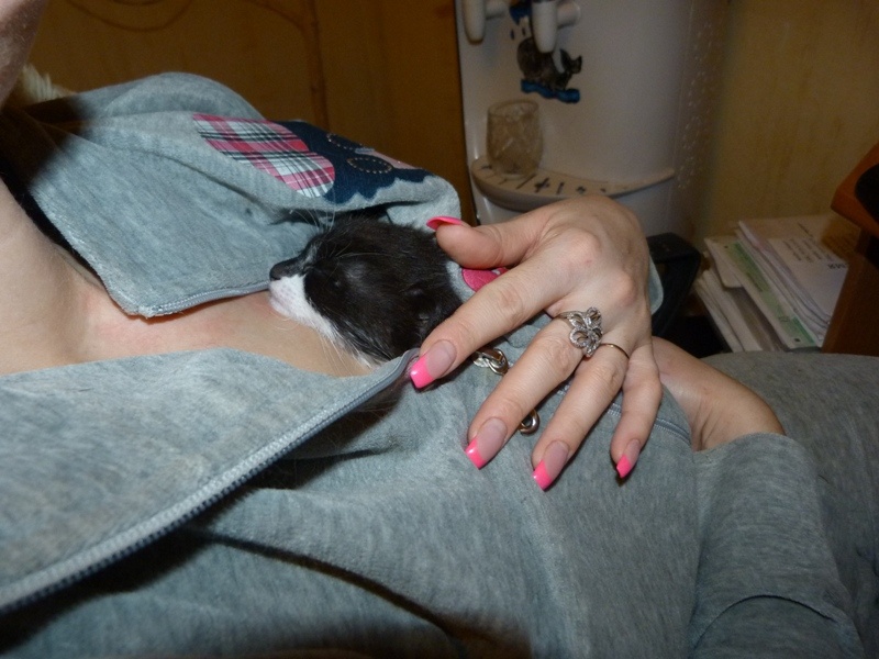 К нашему забору подкинули черно-белого котенка, может кто возьмет к себе? Котенок с клеткой (клетка новая, №3), как котенка пристроите клетку можете себе оставить или использовать для других подобрашек. У себя никак не можем оставить, т.к. у мужа сильная аллергия на любую шерсть, переходящая в астму. Котенок очень ласковый, он даже кушать отказался, первым делом замурлыкал и стал тереться, просить, чтоб его погладили, чудо маленькое. У кого только рука поднялась выкинуть его на мороз?!