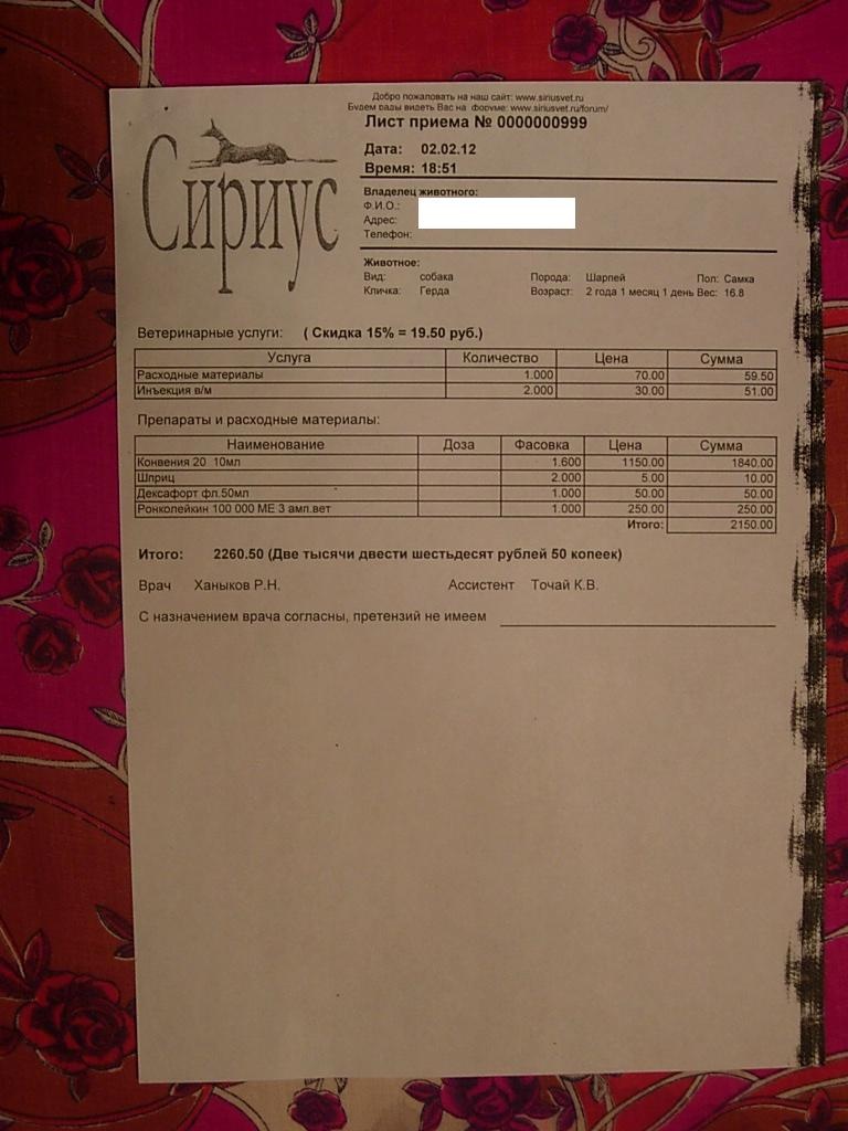 Покормила я её сегодня роялкой для щенков, врачу это озвучила, он ничего не возразил. Я в 6 часов буду звонить, узнавать про анализы, тогда и спрошу про корм. Собе взяли соскоб и кровь на анализ. Пока мы без долга, 1200р я оплатила. Но это, я так понимаю, только один день стационара, так что деньги лишними точно не будут. Спасибо всем, кто помогает и поддерживает морально. Собаку очень жалко, она вся горячая, т.к. кожа воспалена по всему телу. Пока официальный диагноз - аллергия.