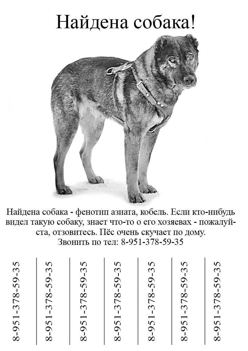Я предложила ему погулять с собакой, пообщаться, но и соответственно поговорить. Вот так мы и гуляли полтора часа. Я объяснила ему, что судя по поведению пес никогда не жил в квартире. Но он уверял меня, что все будет хорошо и он его ко всему приучит. На том и договорились. Я ему сказала где и что купить, а именно РК сс-клаб 20 кг, поводок 7 метров и игрушку. На следующий день, когда мы его к нему привезли, он уже все приобрел. Шерхан въезжал в подъезд в форме звезды, выпустив когти и расплоставшись по кафелю