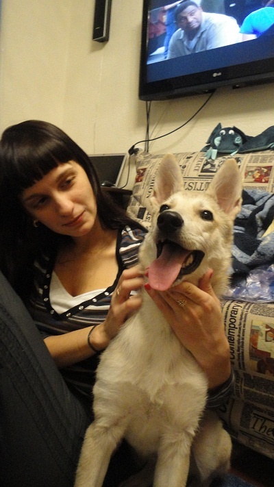 ( жалею, что нет такого смайла) Возвращаяют Боню, которая прожила в квартире 2 месяца. Ей сейчас 5 мес, ест натуралку, гуляет 3 раза в день:утром, в 17-18.00 и на ночь, дома не гадит, не пакостит (со слов "хозов"