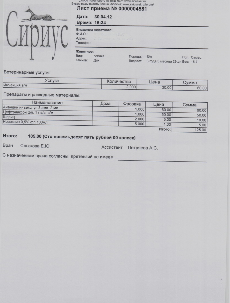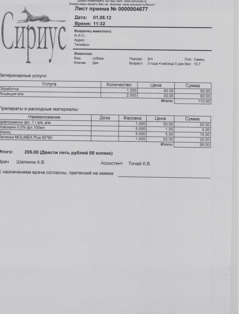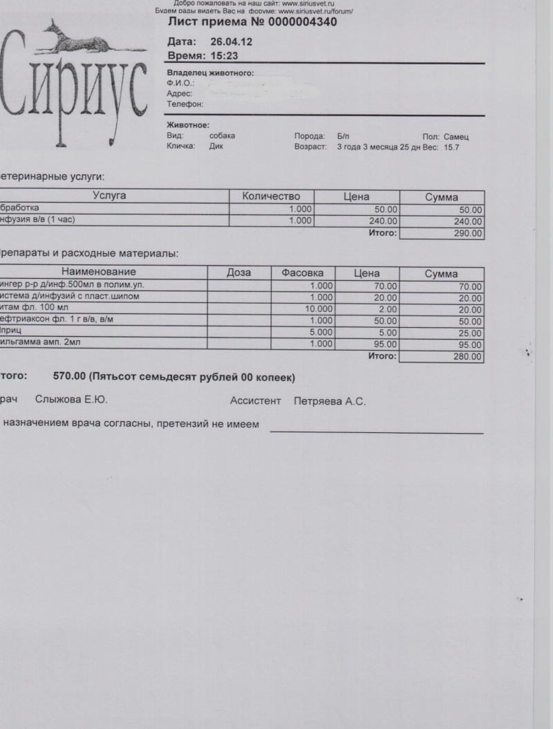 Ответ на сообщение Re: Нужна помощь собаке, пока не понятно какая пользователя 200575ars
