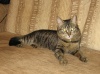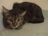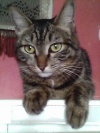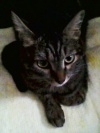 Тигровая кошечка. Самая обычная. ИришкаМ таких называет "кошки из детства". Явно домашняя. Чистая и аккуратная. Довольно худая. Две подушечки на лапках либо ободраны, либо обморожены (мажу "Спасателем"). Из-за ран на подушечках киса хромает. В стрессе. Кричит. Много, жадно ест. Была отобрана моей дочерью у малолетних садистов в районе ГБШ-Доватора. При этом дочь еще и палкой по спине получила.