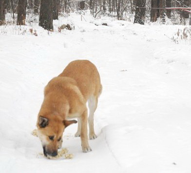 • Предъистория такова. В декабре прошлого года я начала подкармливать 3-х крупных собак у себя на работе: два кобеля и одна сука. Предполагала, что после устаноовления контакта смогу отвезти мадам на стерилизацию. Но время шло, а мои собанечки и не собирались подходить к рукам. Вскоре я нашла мужчину, - зовут Владимир - который кормил их до меня, а потом и подкармливал параллельно со мной. Оказалось, что несмотря на 3-х летнее знакомство, собаки к нему так и не подходили. Вскоре стало понятно, что в этой стае ожидается пополнение. И вот 12 марта сие событие свершилось: на свет появилось 5 малышиков. Об этом мне рассказал Владимир, т.к. я сама боялаь ходить на территорию обитания собак.