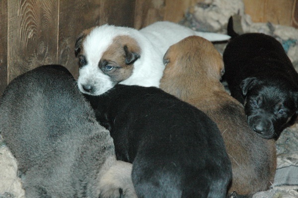Леди просто выгнала из будки Володиного азиата, там и родила детишек. Кормим мы ее отменно, т.е ребятня получает с маминым молочком все необходимое. Ближе к месячному возрасту щенков начнем их подкармливать. Потом Володя их заберт из будки и передаст мне. Думаю через неделю их нужно перевозить.