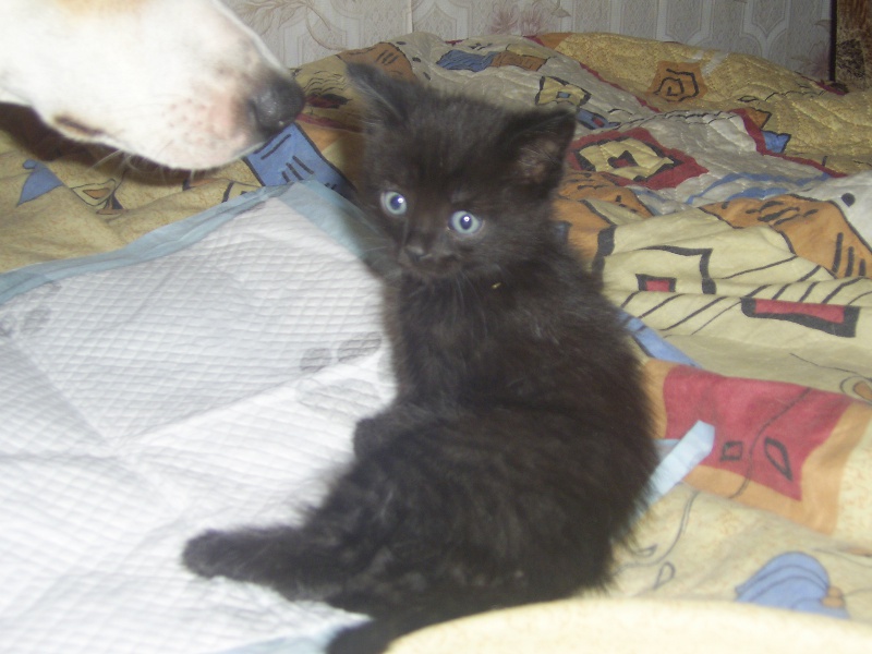Я когда 2-х недельного котенка подобрала, он и моих котов на место поставил, и собаке дал понять, что не боится совсем